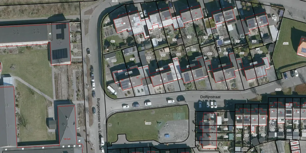 Dolfijnstraat 16 is gelegen op kadastraal perceel DVL00A906. Deze kadastrale aanduiding is uniek en wordt gebruikt door het Kadaster om eigendomsrechten en andere zakelijke rechten vast te leggen. Het perceel maakt onderdeel uit van de kadastrale gemeente Duiveland.