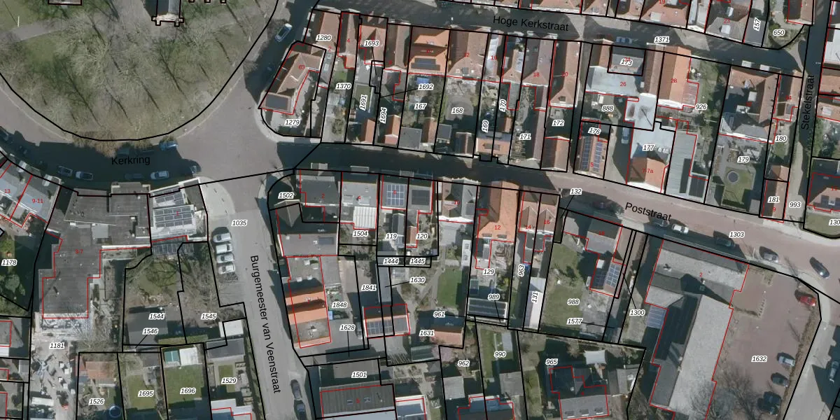 Het perceel waarop Poststraat 8 staat heeft een oppervlakte van 134 m². Dit is een middelgroot perceel. De perceeloppervlakte wordt geregistreerd door het Kadaster. Gedetailleerde informatie over de maten van dit perceel kunt u vinden in het rapport Kadastrale kaart met maatvoering van Poststraat 8.
