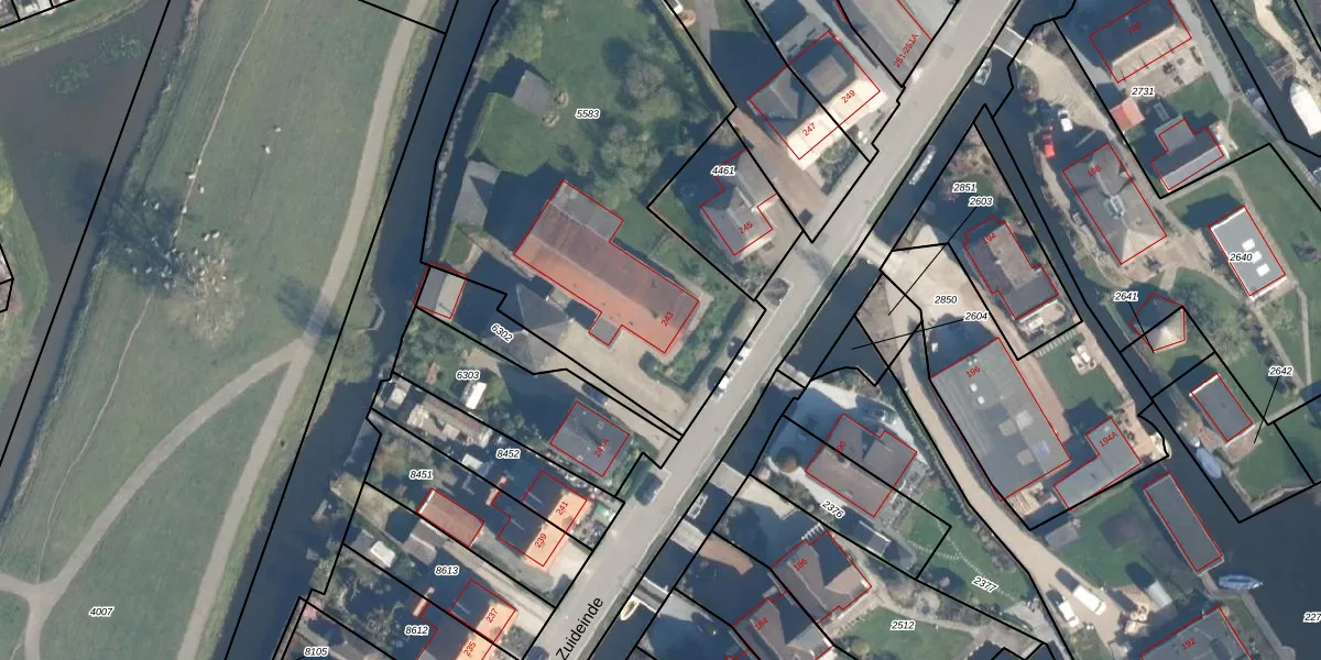 Het perceel waarop Zuideinde 243 staat heeft een oppervlakte van 2305 m². Dit is een zeer groot perceel. De perceeloppervlakte wordt geregistreerd door het Kadaster. Gedetailleerde informatie over de maten van dit perceel kunt u vinden in het rapport Kadastrale kaart met maatvoering van Zuideinde 243.