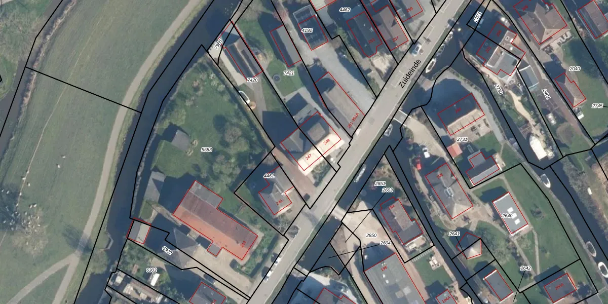 Zuideinde 247 is gelegen op kadastraal perceel NKP01A7420. Deze kadastrale aanduiding is uniek en wordt gebruikt door het Kadaster om eigendomsrechten en andere zakelijke rechten vast te leggen. Het perceel maakt onderdeel uit van de kadastrale gemeente Nieuwkoop.
