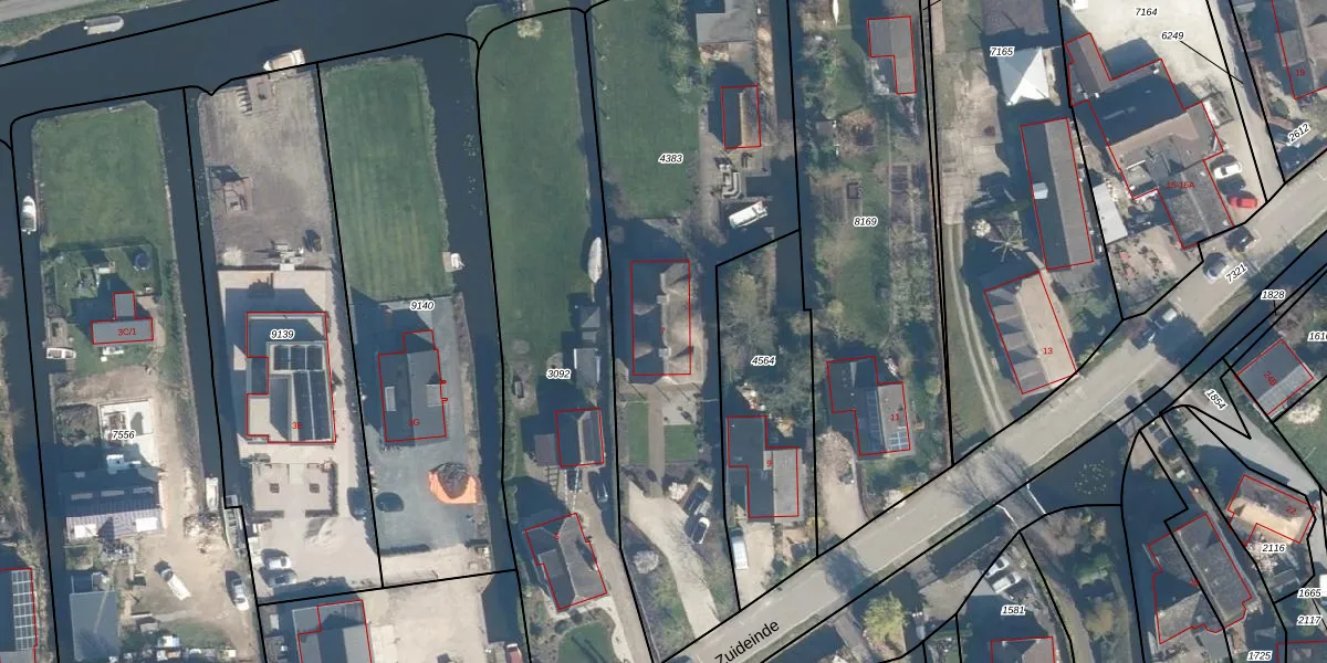 Het perceel waarop Zuideinde 7 staat heeft een oppervlakte van 2226 m². Dit is een zeer groot perceel. De perceeloppervlakte wordt geregistreerd door het Kadaster. Gedetailleerde informatie over de maten van dit perceel kunt u vinden in het rapport Kadastrale kaart met maatvoering van Zuideinde 7.