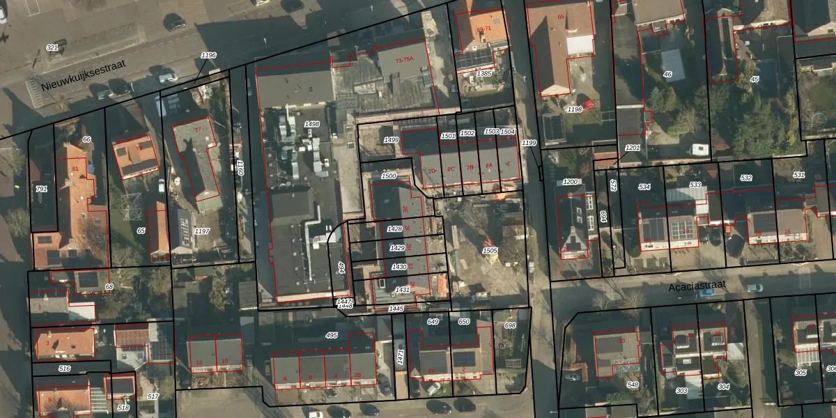 Het perceel waarop het adres ligt is VMN00-M-1500. De afkorting 'VMN00' staat voor kadastrale gemeente Vlijmen. De gemiddelde perceelgrootte in Vlijmen is 2481,15 m². Dit perceel is kleiner: de perceeloppervlakte bedraagt 206 m². Het grootste perceel in de kadastrale gemeente is 20,0 ha. Het kleinste perceel heeft een oppervlakte van 0 m². Er zijn geen andere adressen aanwezig op het perceel. In de Basisregistratie Kadaster (BRK) werden de grenzen van het perceel geregistreerd op 13-01-2026.