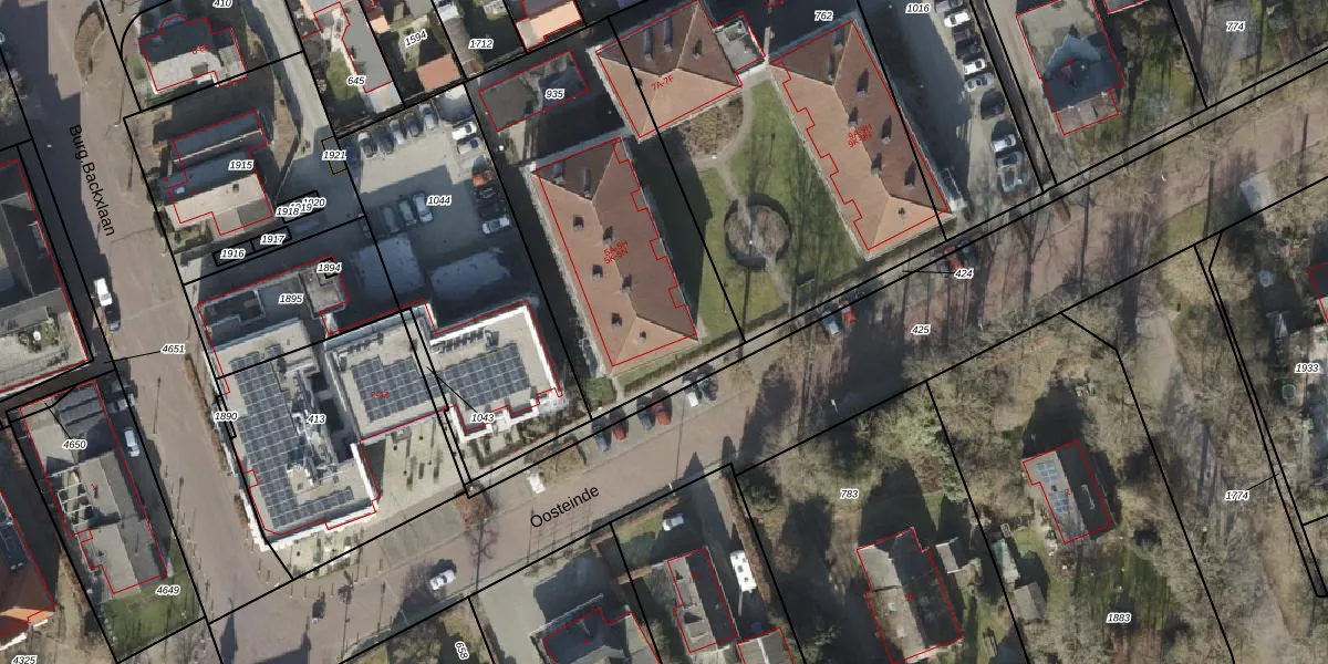 Het perceel waarop Oosteinde 5-A staat heeft een oppervlakte van 1345 m². Dit is een zeer groot perceel. De perceeloppervlakte wordt geregistreerd door het Kadaster. Gedetailleerde informatie over de maten van dit perceel kunt u vinden in het rapport Kadastrale kaart met maatvoering van Oosteinde 5-A.