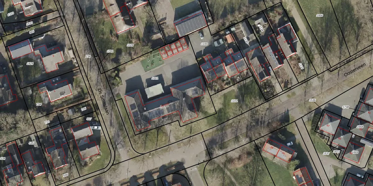 Oosterveen 21-D is gelegen op kadastraal perceel NLS00M1001. Deze kadastrale aanduiding is uniek en wordt gebruikt door het Kadaster om eigendomsrechten en andere zakelijke rechten vast te leggen. Het perceel maakt onderdeel uit van de kadastrale gemeente Nieuwleusen.