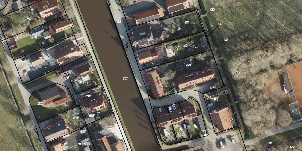 Het perceel waarop Dok 6 staat heeft een oppervlakte van 1123 m². Dit is een zeer groot perceel. De perceeloppervlakte wordt geregistreerd door het Kadaster. Gedetailleerde informatie over de maten van dit perceel kunt u vinden in het rapport Kadastrale kaart met maatvoering van Dok 6.