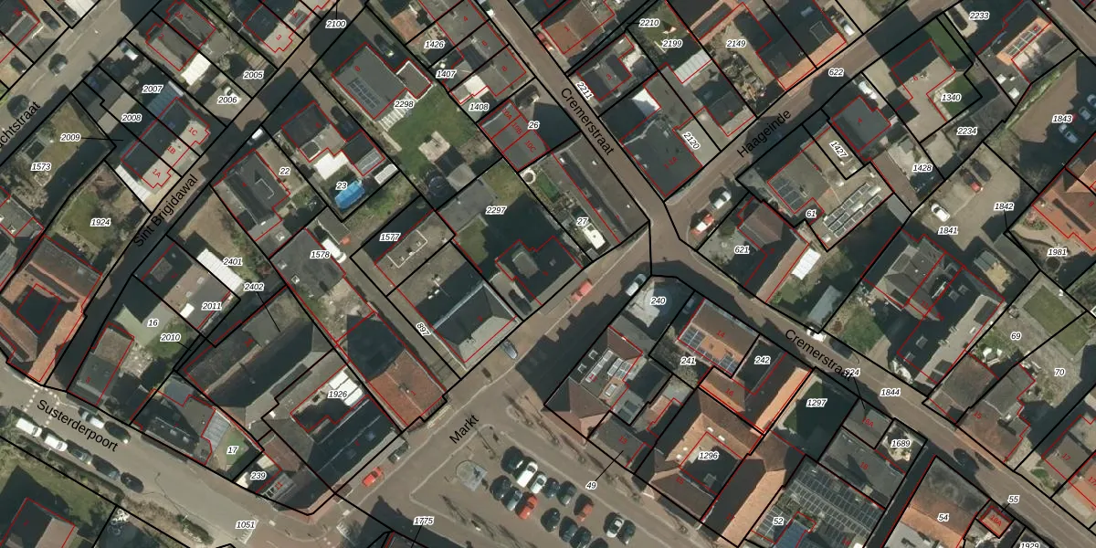 Het adres is gelegen op perceel 2297 in de sectie E en de kadastrale gemeente Nieuwstadt. De kadastrale aanduiding is aldus NST02-E-2297. De gemiddelde perceelgrootte in Nieuwstadt is 1939,55 m². Dit perceel is kleiner: de perceeloppervlakte bedraagt 430 m². Het grootste perceel in de kadastrale gemeente is 8,4 ha. Het kleinste perceel heeft een oppervlakte van 0 m². Dit is het enige adres dat aanwezig is op het perceel. De huidige grenzen van het perceel zijn digitaal in de Basisregistratie Kadaster (BRK) geregistreerd op 10-12-2014.