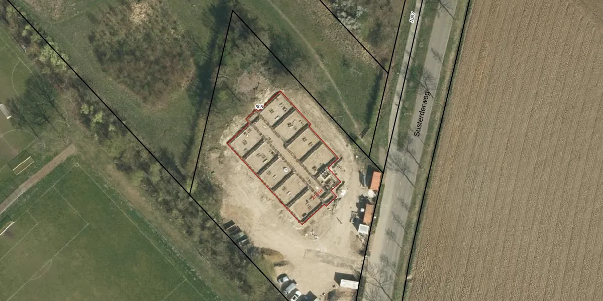 Het perceel waarop Susterderweg 29-F staat heeft een oppervlakte van 3935 m². Dit is een zeer groot perceel. De perceeloppervlakte wordt geregistreerd door het Kadaster. Gedetailleerde informatie over de maten van dit perceel kunt u vinden in het rapport Kadastrale kaart met maatvoering van Susterderweg 29-F.