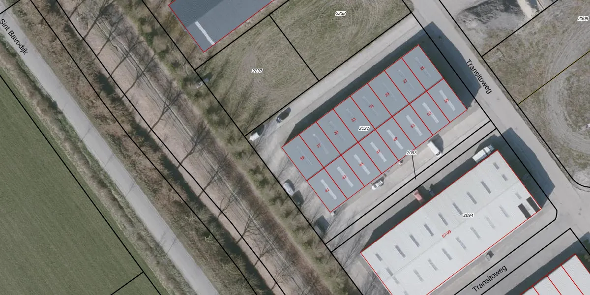Transitoweg 39 is gelegen op kadastraal perceel OBG00R2127. Deze kadastrale aanduiding is uniek en wordt gebruikt door het Kadaster om eigendomsrechten en andere zakelijke rechten vast te leggen. Het perceel maakt onderdeel uit van de kadastrale gemeente Oostburg.