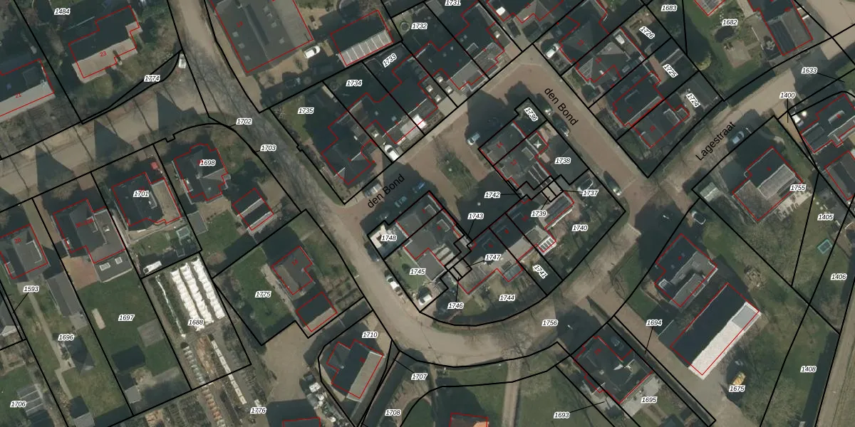 Het perceel waarop den Bond 2 staat heeft een oppervlakte van 106 m². Dit is een middelgroot perceel. De perceeloppervlakte wordt geregistreerd door het Kadaster. Gedetailleerde informatie over de maten van dit perceel kunt u vinden in het rapport Kadastrale kaart met maatvoering van den Bond 2.