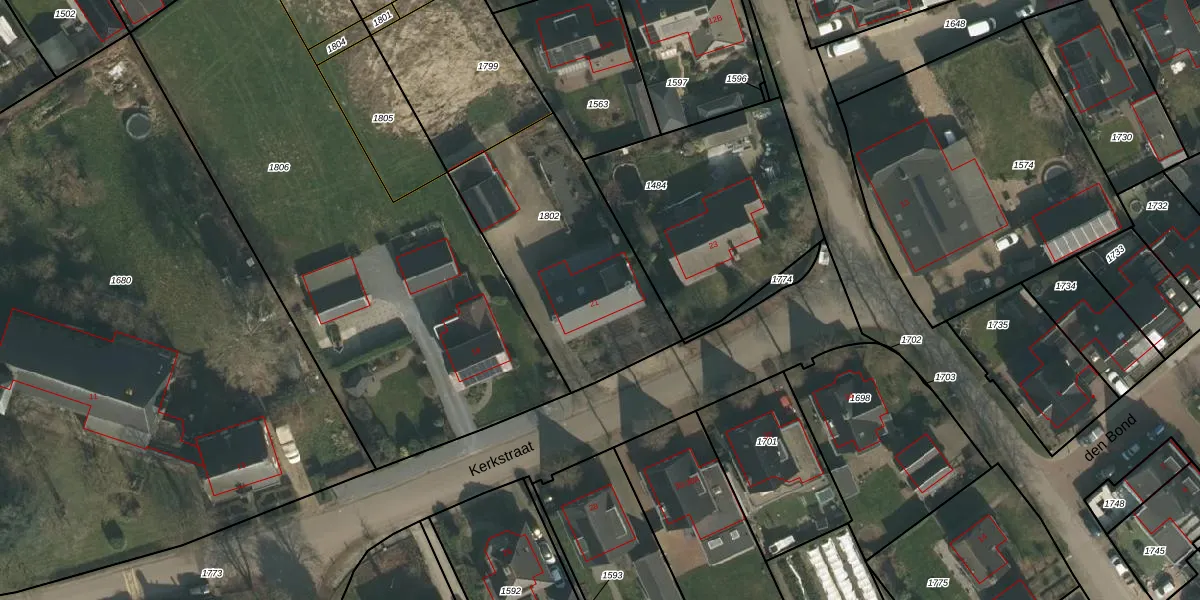 Het perceel waarop Kerkstraat 21 staat heeft een oppervlakte van 863 m². Dit is een groot perceel. De perceeloppervlakte wordt geregistreerd door het Kadaster. Gedetailleerde informatie over de maten van dit perceel kunt u vinden in het rapport Kadastrale kaart met maatvoering van Kerkstraat 21.