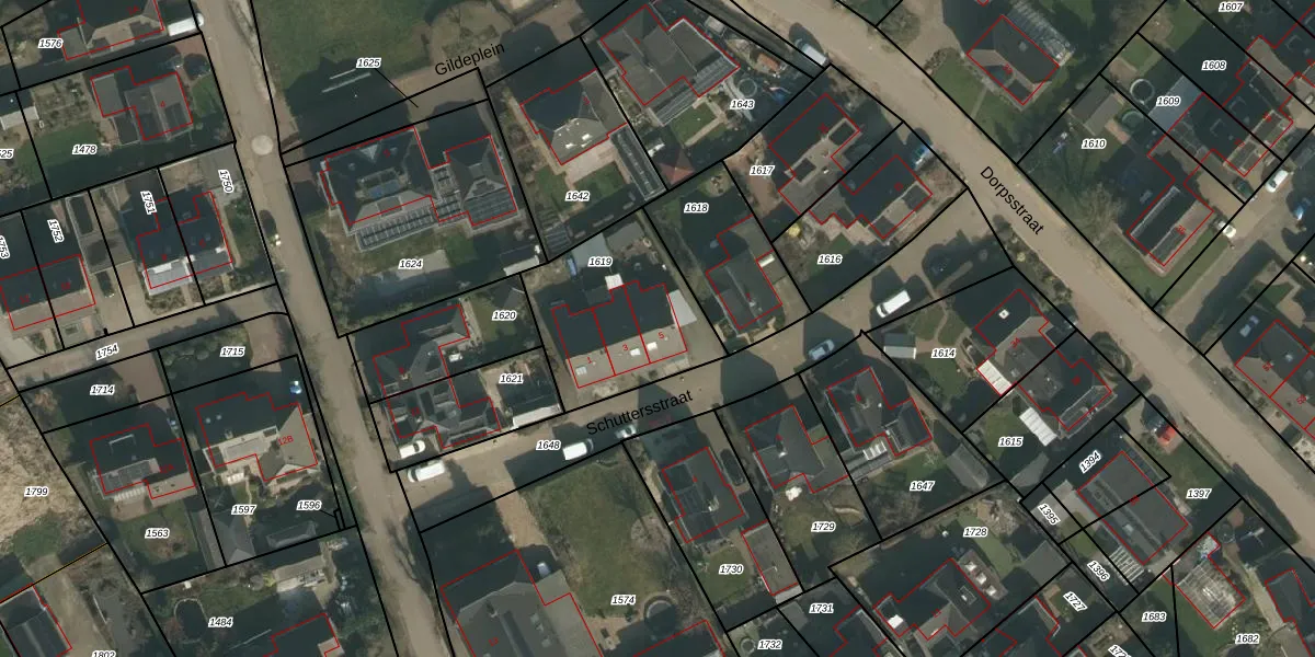 Schuttersstraat 5 is gelegen op kadastraal perceel NTK00A1619. Deze kadastrale aanduiding is uniek en wordt gebruikt door het Kadaster om eigendomsrechten en andere zakelijke rechten vast te leggen. Het perceel maakt onderdeel uit van de kadastrale gemeente Niftrik.