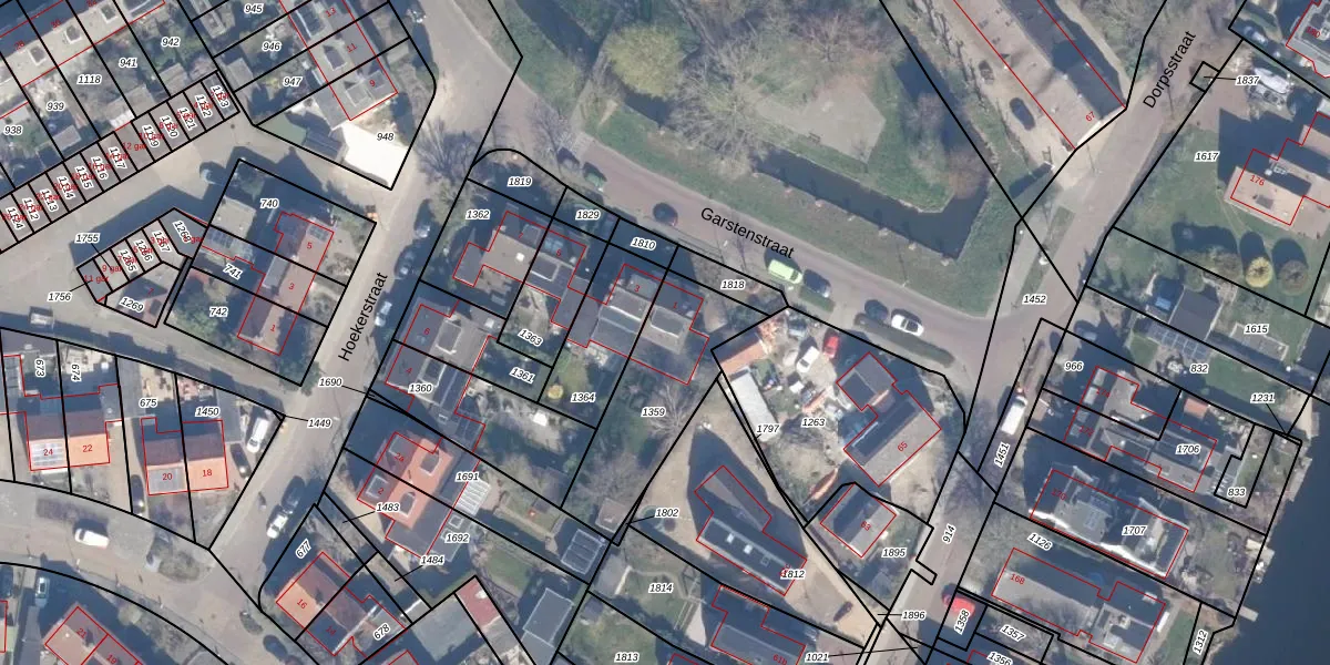 Het perceel waarop Garstenstraat 1 staat heeft een oppervlakte van 475 m². Dit is een groot perceel. De perceeloppervlakte wordt geregistreerd door het Kadaster. Gedetailleerde informatie over de maten van dit perceel kunt u vinden in het rapport Kadastrale kaart met maatvoering van Garstenstraat 1.
