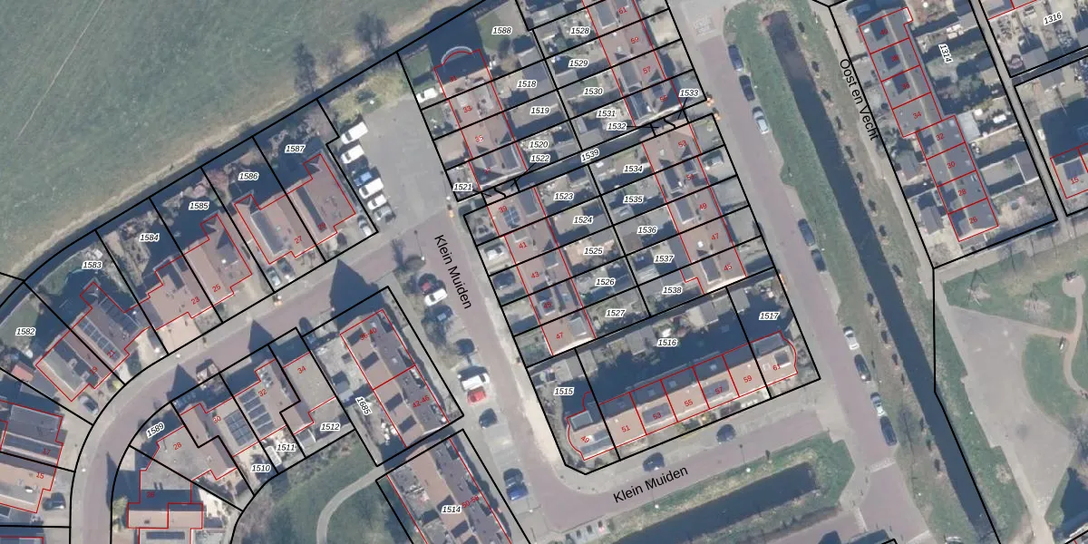 Klein Muiden 43 is gelegen op kadastraal perceel NTV00A1525. Deze kadastrale aanduiding is uniek en wordt gebruikt door het Kadaster om eigendomsrechten en andere zakelijke rechten vast te leggen. Het perceel maakt onderdeel uit van de kadastrale gemeente Nigtevecht.