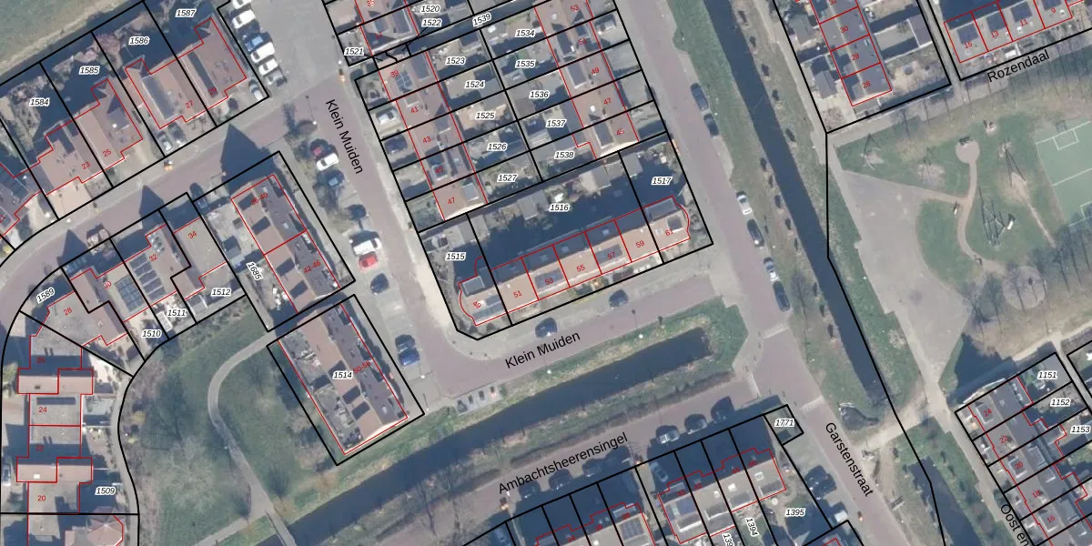 Het perceel waarop Klein Muiden 53 staat heeft een oppervlakte van 670 m². Dit is een groot perceel. De perceeloppervlakte wordt geregistreerd door het Kadaster. Gedetailleerde informatie over de maten van dit perceel kunt u vinden in het rapport Kadastrale kaart met maatvoering van Klein Muiden 53.