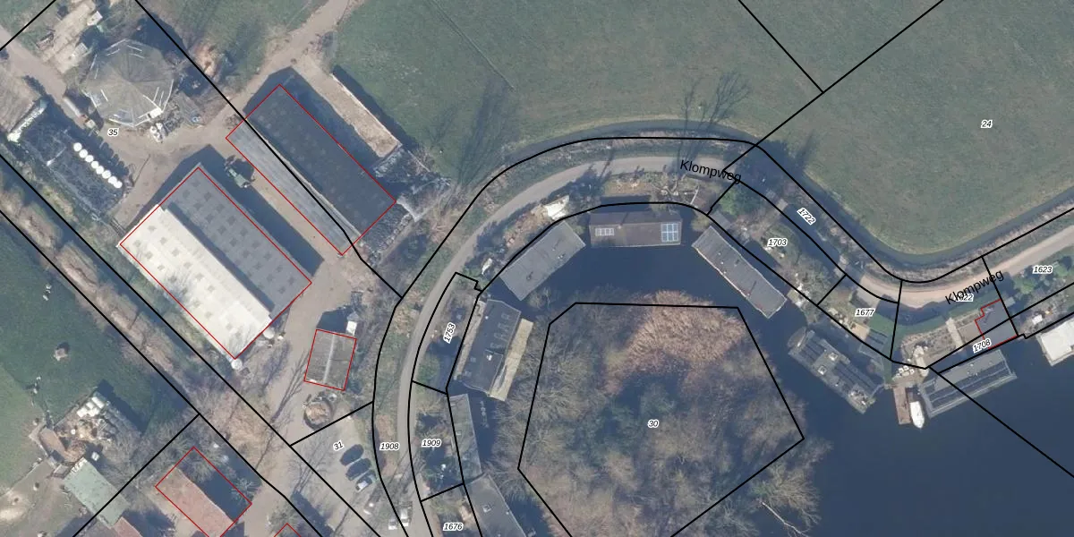 Het perceel waarop Klompweg 19 staat heeft een oppervlakte van 6910 m². Dit is een zeer groot perceel. De perceeloppervlakte wordt geregistreerd door het Kadaster. Gedetailleerde informatie over de maten van dit perceel kunt u vinden in het rapport Kadastrale kaart met maatvoering van Klompweg 19.