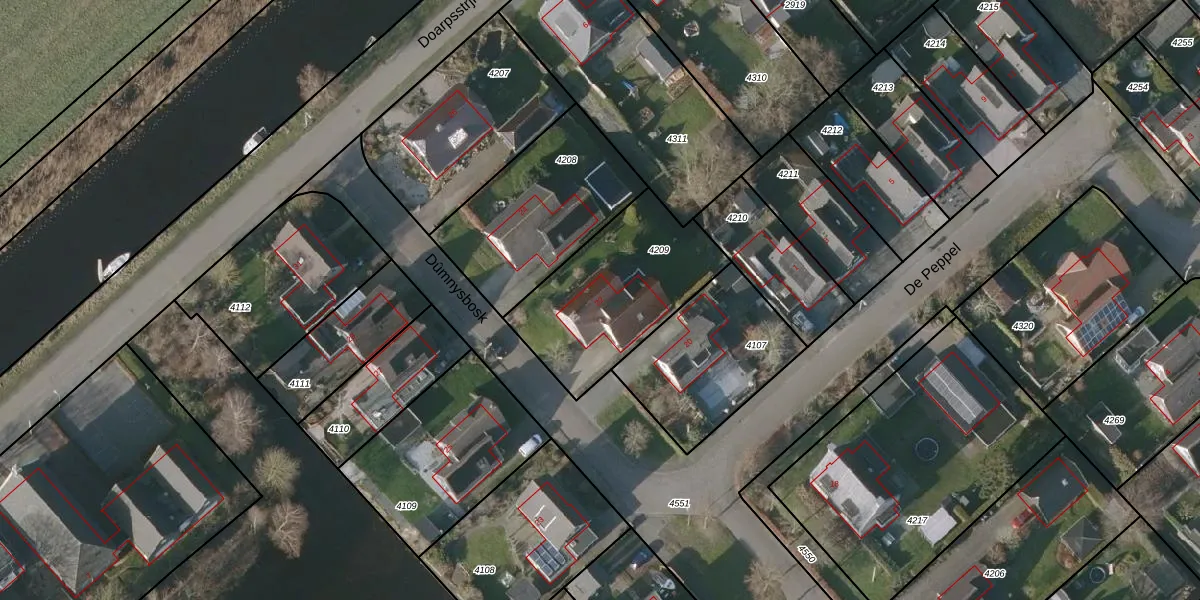 Het perceel waarop Dûmnysbosk 22 staat heeft een oppervlakte van 625 m². Dit is een groot perceel. De perceeloppervlakte wordt geregistreerd door het Kadaster. Gedetailleerde informatie over de maten van dit perceel kunt u vinden in het rapport Kadastrale kaart met maatvoering van Dûmnysbosk 22.