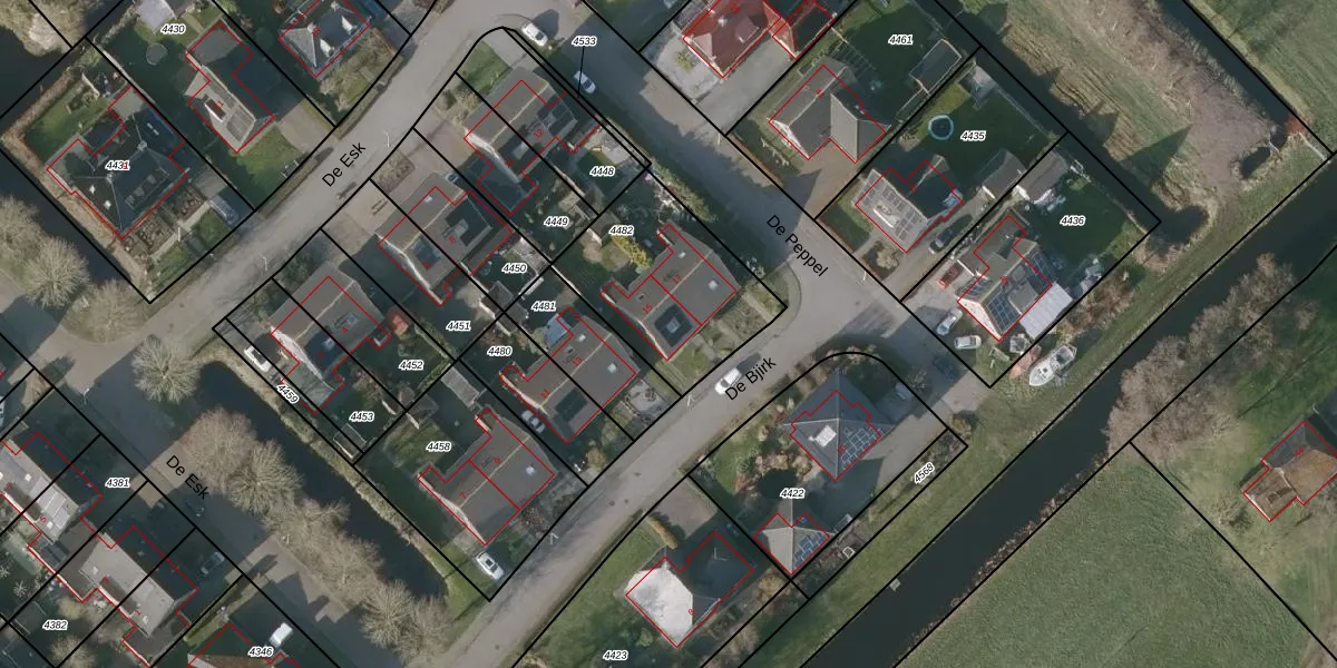 Het perceel waarop De Bjirk 15 staat heeft een oppervlakte van 590 m². Dit is een groot perceel. De perceeloppervlakte wordt geregistreerd door het Kadaster. Gedetailleerde informatie over de maten van dit perceel kunt u vinden in het rapport Kadastrale kaart met maatvoering van De Bjirk 15.