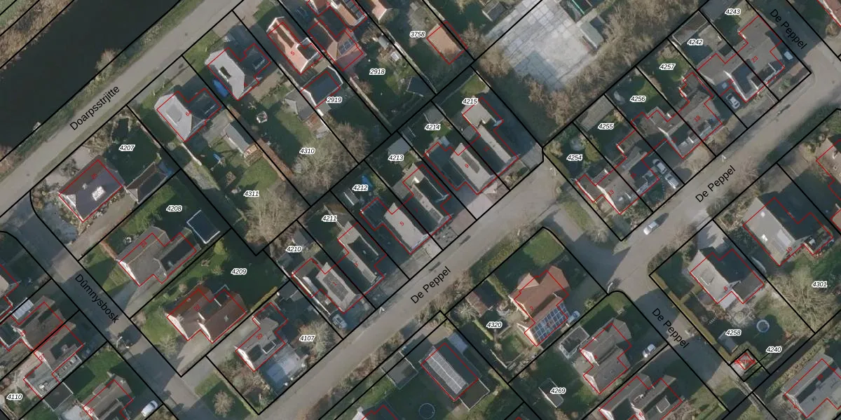Het perceel waarop De Peppel 7 staat heeft een oppervlakte van 305 m². Dit is een groot perceel. De perceeloppervlakte wordt geregistreerd door het Kadaster. Gedetailleerde informatie over de maten van dit perceel kunt u vinden in het rapport Kadastrale kaart met maatvoering van De Peppel 7.