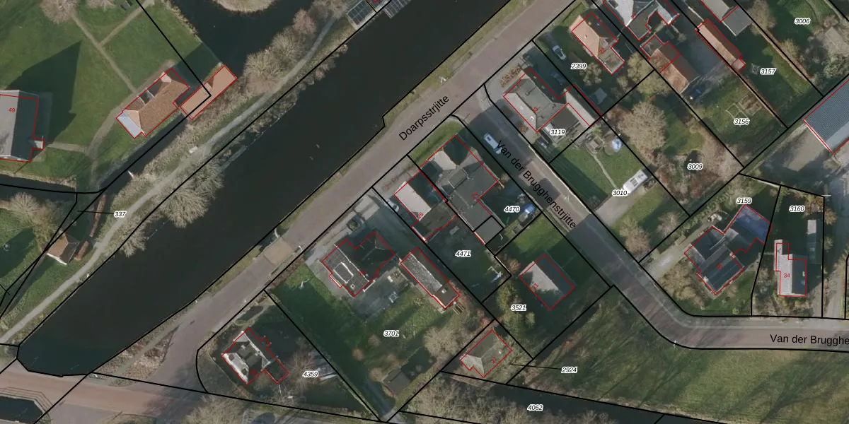 Het perceel waarop Doarpsstrjitte 25 staat heeft een oppervlakte van 420 m². Dit is een groot perceel. De perceeloppervlakte wordt geregistreerd door het Kadaster. Gedetailleerde informatie over de maten van dit perceel kunt u vinden in het rapport Kadastrale kaart met maatvoering van Doarpsstrjitte 25.