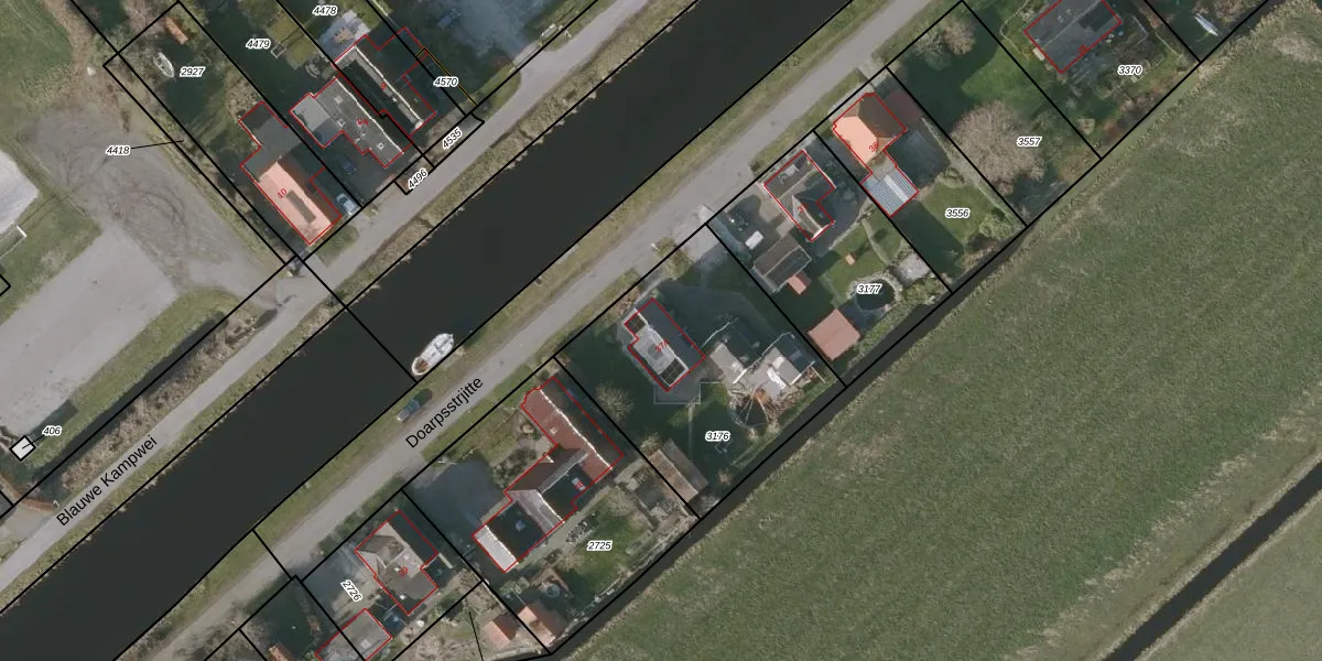 Het perceel waarop Doarpsstrjitte 37-A staat heeft een oppervlakte van 910 m². Dit is een groot perceel. De perceeloppervlakte wordt geregistreerd door het Kadaster. Gedetailleerde informatie over de maten van dit perceel kunt u vinden in het rapport Kadastrale kaart met maatvoering van Doarpsstrjitte 37-A.