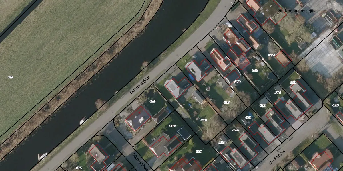 Het perceel waarop Doarpsstrjitte 6-A staat heeft een oppervlakte van 835 m². Dit is een groot perceel. De perceeloppervlakte wordt geregistreerd door het Kadaster. Gedetailleerde informatie over de maten van dit perceel kunt u vinden in het rapport Kadastrale kaart met maatvoering van Doarpsstrjitte 6-A.