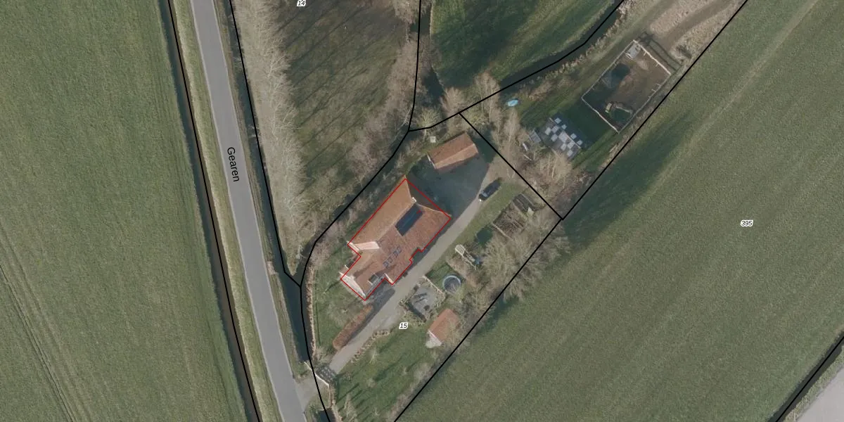 Het perceel waarop Gearen 2 staat heeft een oppervlakte van 2720 m². Dit is een zeer groot perceel. De perceeloppervlakte wordt geregistreerd door het Kadaster. Gedetailleerde informatie over de maten van dit perceel kunt u vinden in het rapport Kadastrale kaart met maatvoering van Gearen 2.