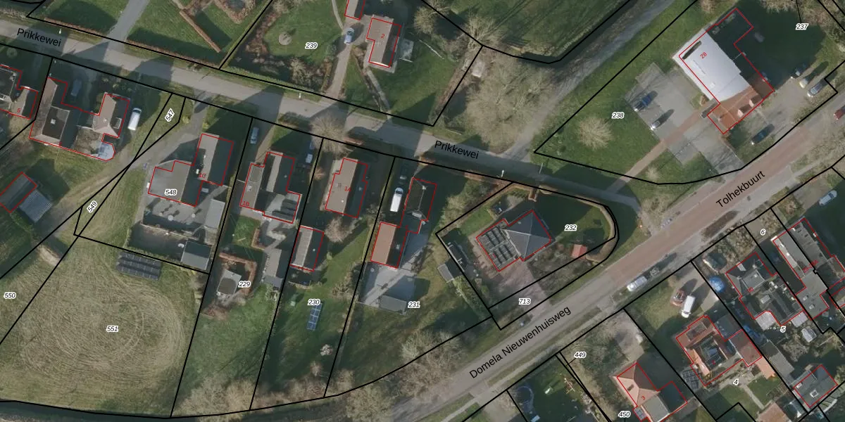 Het perceel waarop Prikkewei 1 staat heeft een oppervlakte van 1215 m². Dit is een zeer groot perceel. De perceeloppervlakte wordt geregistreerd door het Kadaster. Gedetailleerde informatie over de maten van dit perceel kunt u vinden in het rapport Kadastrale kaart met maatvoering van Prikkewei 1.