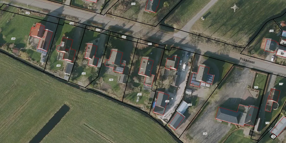 Het perceel waarop Prikkewei 41 staat heeft een oppervlakte van 911 m². Dit is een groot perceel. De perceeloppervlakte wordt geregistreerd door het Kadaster. Gedetailleerde informatie over de maten van dit perceel kunt u vinden in het rapport Kadastrale kaart met maatvoering van Prikkewei 41.