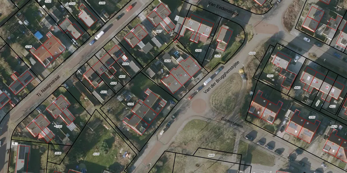 Het perceel waarop Van der Brugghenstrjitte 14 staat heeft een oppervlakte van 690 m². Dit is een groot perceel. De perceeloppervlakte wordt geregistreerd door het Kadaster. Gedetailleerde informatie over de maten van dit perceel kunt u vinden in het rapport Kadastrale kaart met maatvoering van Van der Brugghenstrjitte 14.