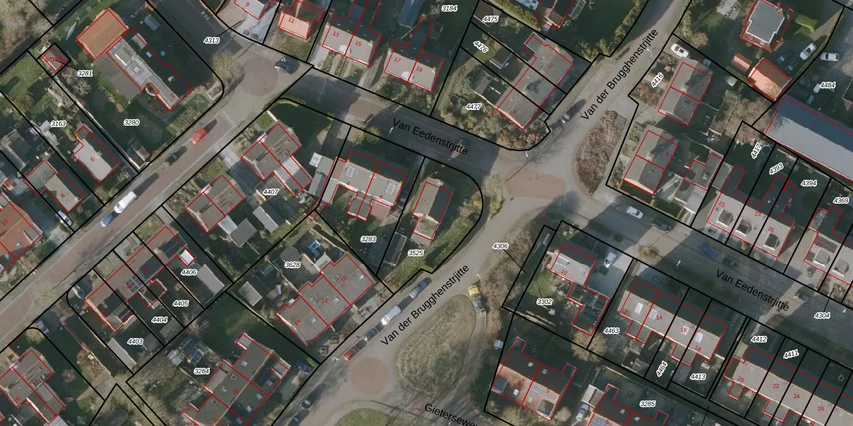 Gebruik de zoekbalk of klik op een perceel voor informatie over de adressen binnen dit perceel.
