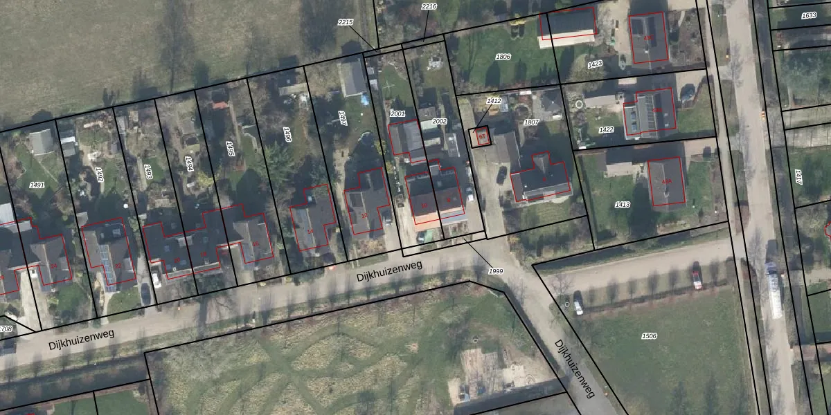 Dijkhuizenweg 10 is gelegen op kadastraal perceel NBK02B2001. Deze kadastrale aanduiding is uniek en wordt gebruikt door het Kadaster om eigendomsrechten en andere zakelijke rechten vast te leggen. Het perceel maakt onderdeel uit van de kadastrale gemeente Nijbroek.