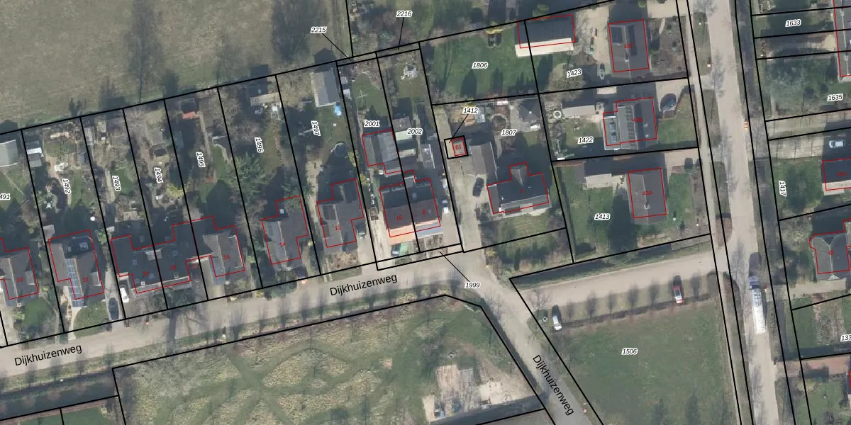 Het perceel waarop Dijkhuizenweg 8 staat heeft een oppervlakte van 469 m². Dit is een groot perceel. De perceeloppervlakte wordt geregistreerd door het Kadaster. Gedetailleerde informatie over de maten van dit perceel kunt u vinden in het rapport Kadastrale kaart met maatvoering van Dijkhuizenweg 8.
