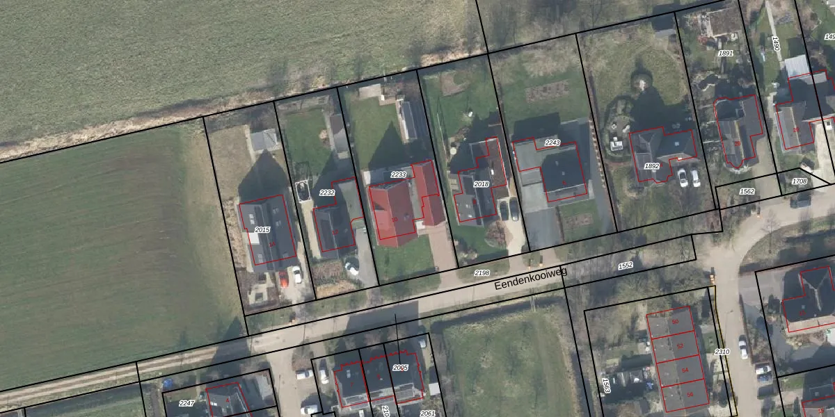 Het perceel waarop Eendenkooiweg 10 staat heeft een oppervlakte van 950 m². Dit is een groot perceel. De perceeloppervlakte wordt geregistreerd door het Kadaster. Gedetailleerde informatie over de maten van dit perceel kunt u vinden in het rapport Kadastrale kaart met maatvoering van Eendenkooiweg 10.
