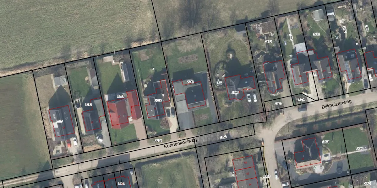 Het perceel waarop Eendenkooiweg 6 staat heeft een oppervlakte van 1061 m². Dit is een zeer groot perceel. De perceeloppervlakte wordt geregistreerd door het Kadaster. Gedetailleerde informatie over de maten van dit perceel kunt u vinden in het rapport Kadastrale kaart met maatvoering van Eendenkooiweg 6.