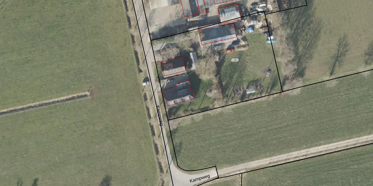 Kampweg 9 is gelegen op kadastraal perceel NBK02B1883. Deze kadastrale aanduiding is uniek en wordt gebruikt door het Kadaster om eigendomsrechten en andere zakelijke rechten vast te leggen. Het perceel maakt onderdeel uit van de kadastrale gemeente Nijbroek.