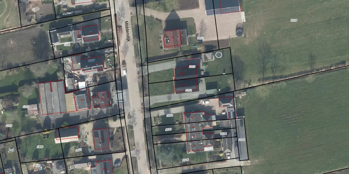 Middendijk 50-A is gelegen op kadastraal perceel NBK02B2212. Deze kadastrale aanduiding is uniek en wordt gebruikt door het Kadaster om eigendomsrechten en andere zakelijke rechten vast te leggen. Het perceel maakt onderdeel uit van de kadastrale gemeente Nijbroek.