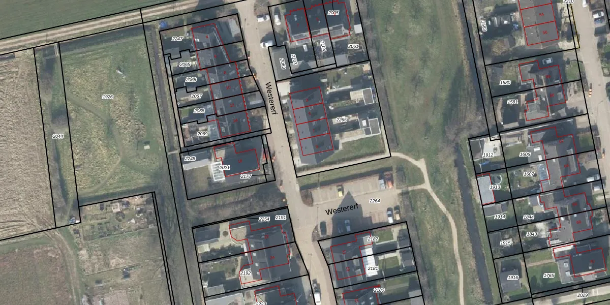 Het perceel waarop Westererf 9 staat heeft een oppervlakte van 946 m². Dit is een groot perceel. De perceeloppervlakte wordt geregistreerd door het Kadaster. Gedetailleerde informatie over de maten van dit perceel kunt u vinden in het rapport Kadastrale kaart met maatvoering van Westererf 9.