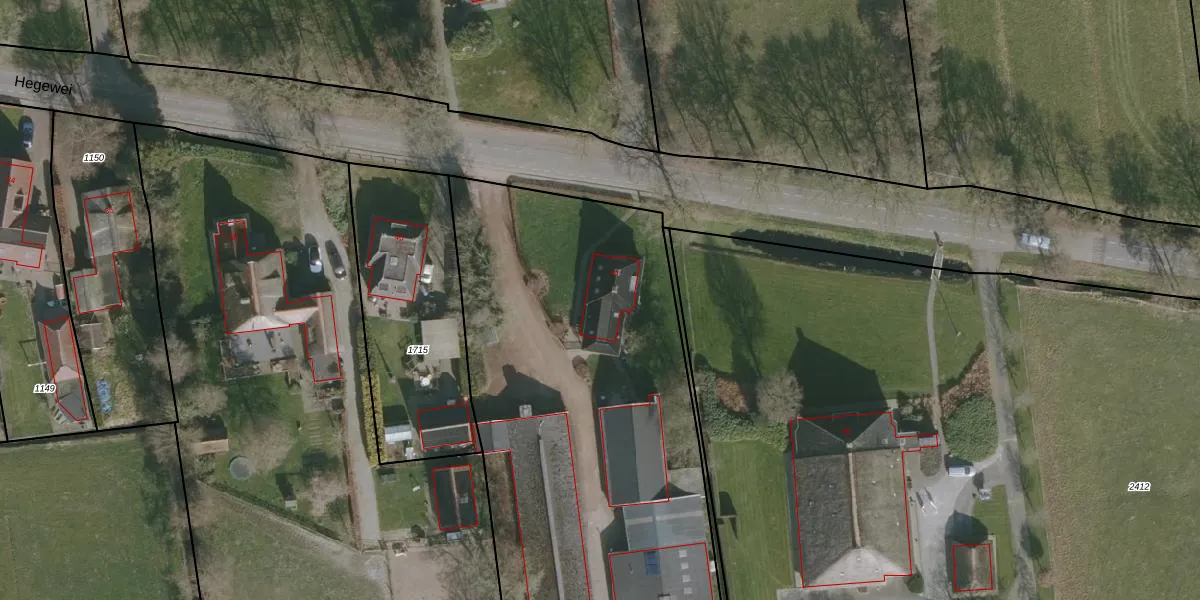 Het perceel waarop Hegewei 44 staat heeft een oppervlakte van 2,3 ha. Dit is een zeer groot perceel. De perceeloppervlakte wordt geregistreerd door het Kadaster. Gedetailleerde informatie over de maten van dit perceel kunt u vinden in het rapport Kadastrale kaart met maatvoering van Hegewei 44.