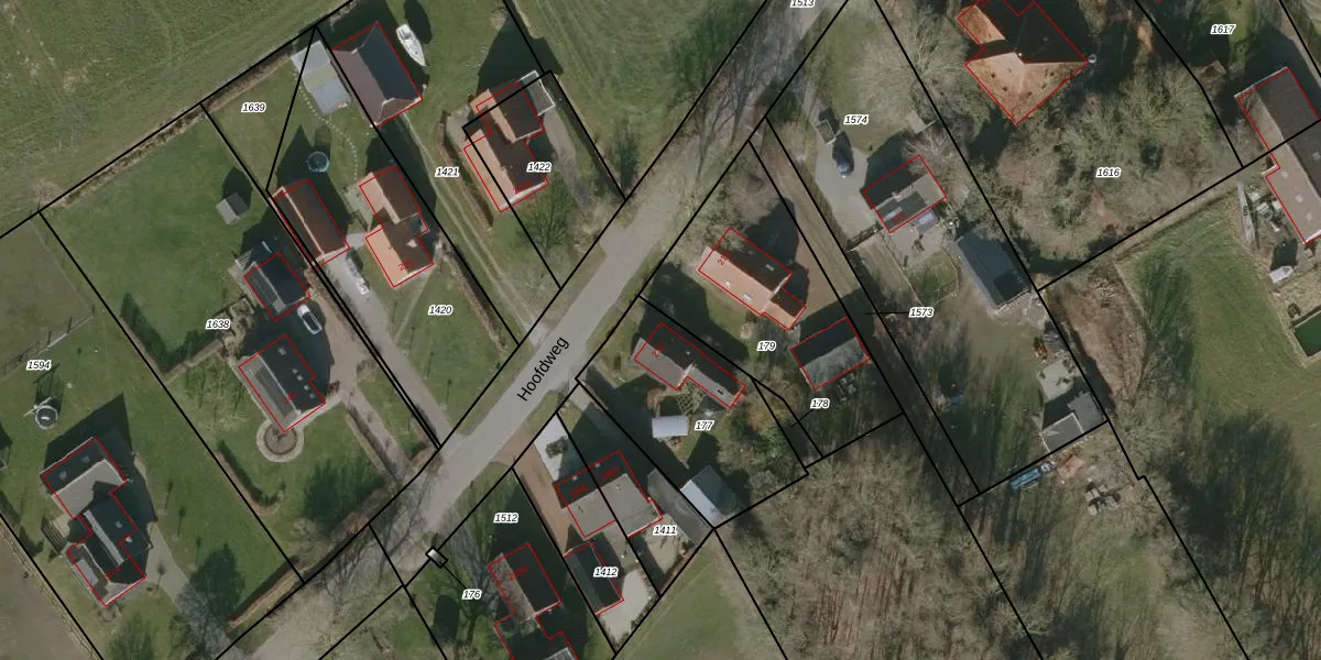 Het perceel waarop Hoofdweg 210 staat heeft een oppervlakte van 611 m². Dit is een groot perceel. De perceeloppervlakte wordt geregistreerd door het Kadaster. Gedetailleerde informatie over de maten van dit perceel kunt u vinden in het rapport Kadastrale kaart met maatvoering van Hoofdweg 210.