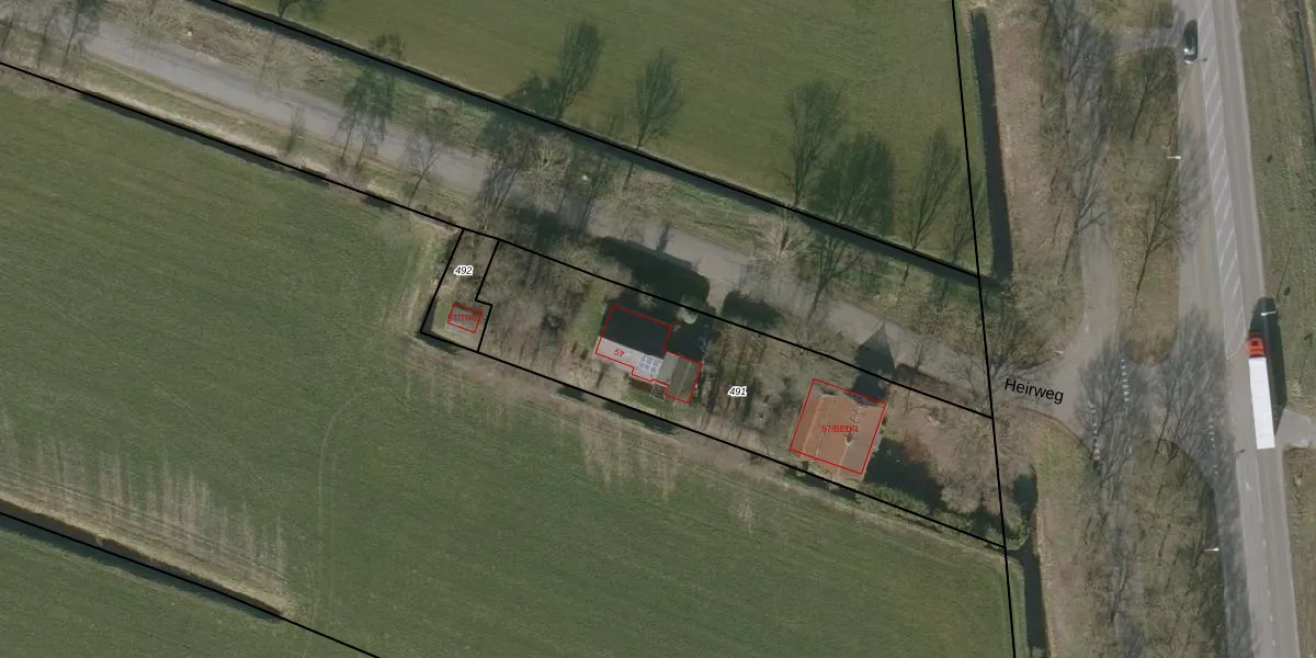 Heirweg 57 is gelegen op kadastraal perceel WVG00J491. Deze kadastrale aanduiding is uniek en wordt gebruikt door het Kadaster om eigendomsrechten en andere zakelijke rechten vast te leggen. Het perceel maakt onderdeel uit van de kadastrale gemeente Wolvega.
