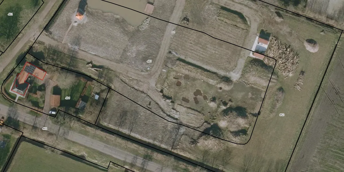 Het perceel waarop het adres ligt is WVG00-J-483. De afkorting 'WVG00' staat voor kadastrale gemeente Wolvega. De gemiddelde perceeloppervlakte in de kadastrale gemeente Wolvega is 6205,41 m². Dit perceel is met zijn 6630 m² dus groter dan gemiddeld. Het grootste perceel in de kadastrale gemeente is 45,2 ha. Het kleinste perceel heeft een oppervlakte van 0 m². Dit is het enige adres dat aanwezig is op het perceel. De huidige grenzen van het perceel zijn digitaal in de Basisregistratie Kadaster (BRK) geregistreerd op 15-01-1998.