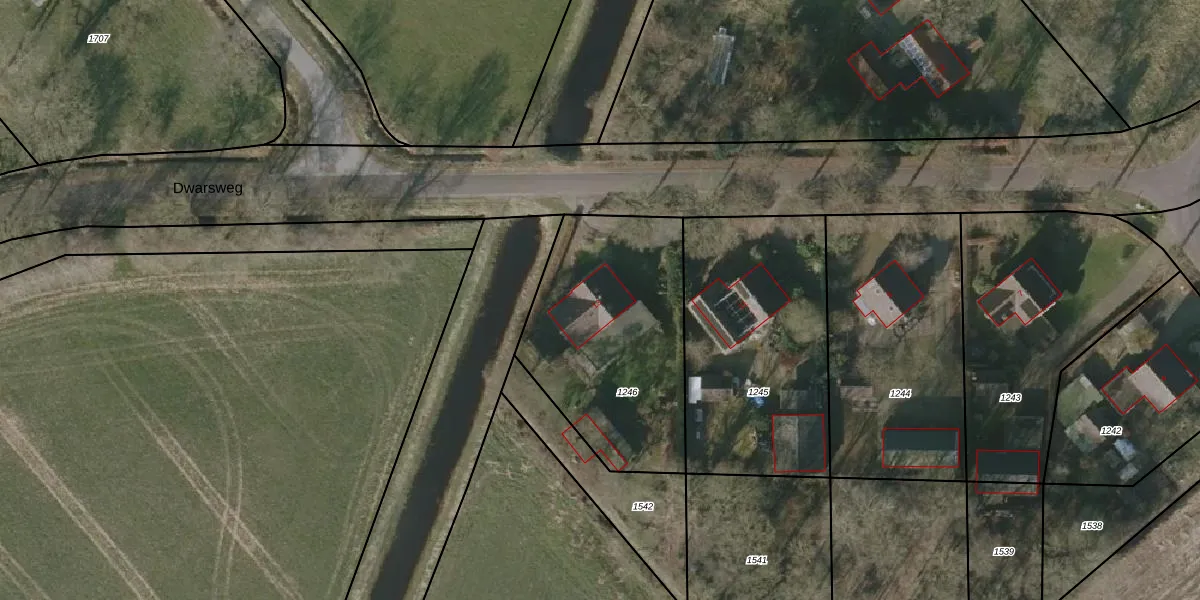 Dwarsweg 13 is gelegen op kadastraal perceel VDR00K1246. Deze kadastrale aanduiding is uniek en wordt gebruikt door het Kadaster om eigendomsrechten en andere zakelijke rechten vast te leggen. Het perceel maakt onderdeel uit van de kadastrale gemeente Vledder.