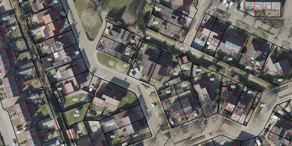 Gebruik de zoekbalk of klik op een perceel voor informatie over de adressen binnen dit perceel.