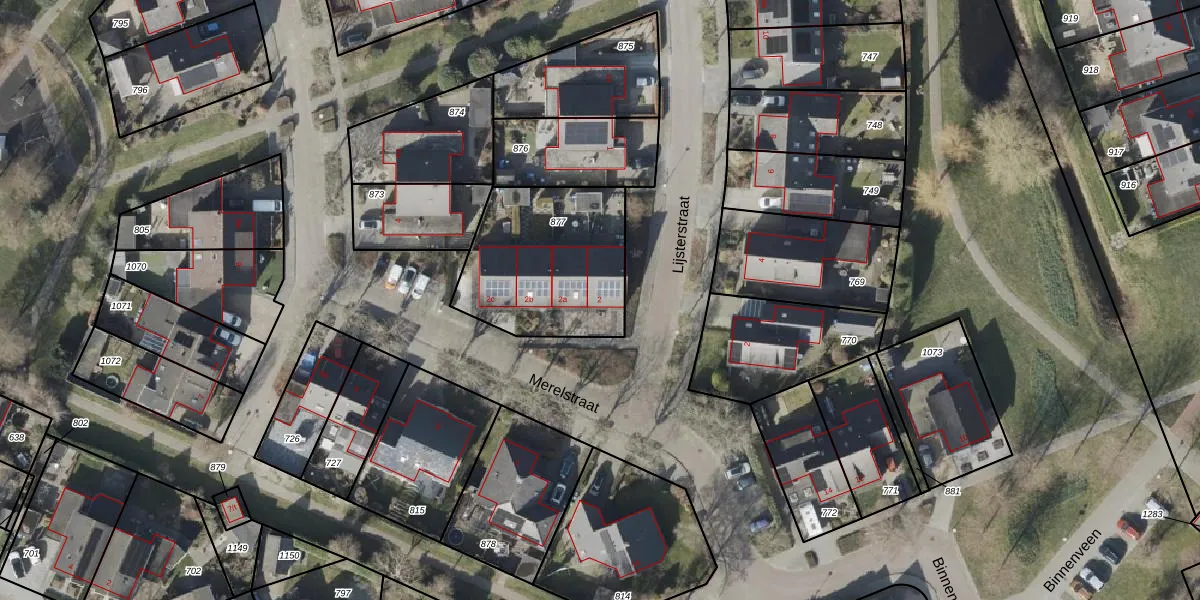 Het perceel waarop Merelstraat 2 staat heeft een oppervlakte van 632 m². Dit is een groot perceel. De perceeloppervlakte wordt geregistreerd door het Kadaster. Gedetailleerde informatie over de maten van dit perceel kunt u vinden in het rapport Kadastrale kaart met maatvoering van Merelstraat 2.