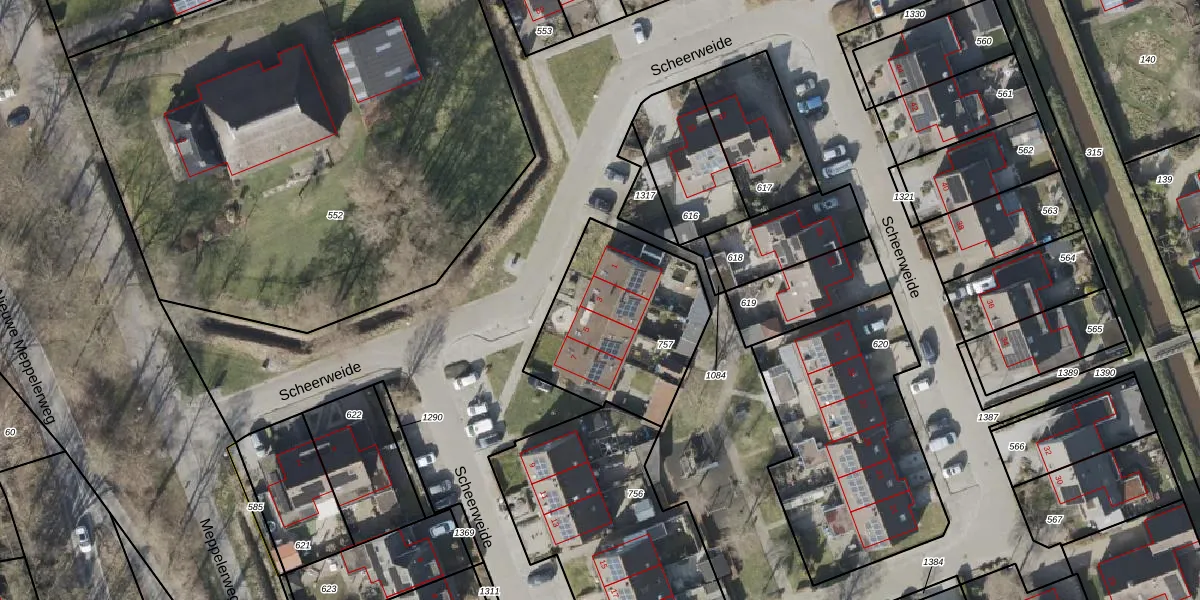 Scheerweide 3 is gelegen op kadastraal perceel NEV00I757. Deze kadastrale aanduiding is uniek en wordt gebruikt door het Kadaster om eigendomsrechten en andere zakelijke rechten vast te leggen. Het perceel maakt onderdeel uit van de kadastrale gemeente Nijeveen.