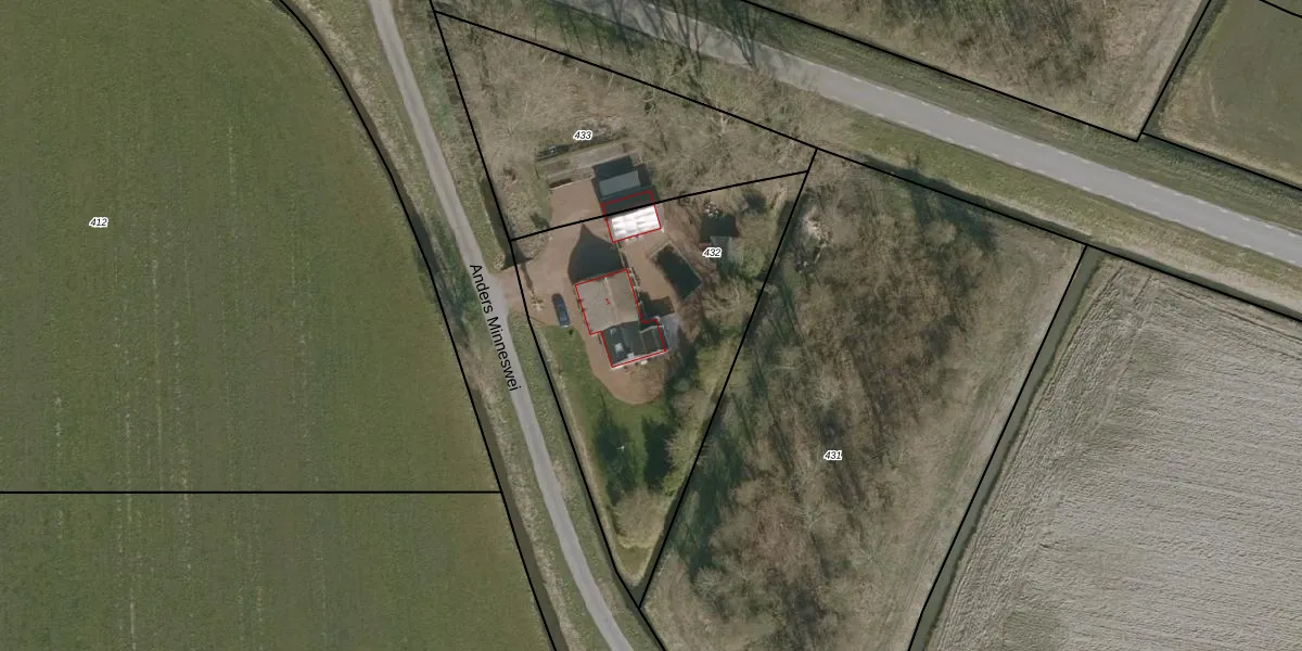 Anders Minneswei 1 is gelegen op kadastraal perceel NKK02E432. Deze kadastrale aanduiding is uniek en wordt gebruikt door het Kadaster om eigendomsrechten en andere zakelijke rechten vast te leggen. Het perceel maakt onderdeel uit van de kadastrale gemeente Nijkerk Friesland.