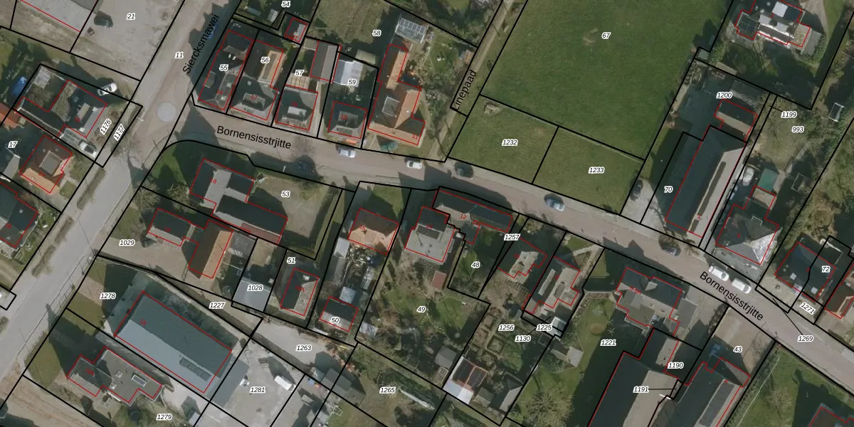 Het perceel waarop Bornensisstrjitte 14 staat heeft een oppervlakte van 780 m². Dit is een groot perceel. De perceeloppervlakte wordt geregistreerd door het Kadaster. Gedetailleerde informatie over de maten van dit perceel kunt u vinden in het rapport Kadastrale kaart met maatvoering van Bornensisstrjitte 14.