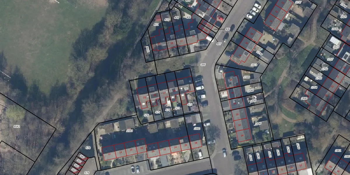 Gebruik de zoekbalk of klik op een perceel voor informatie over de adressen binnen dit perceel.