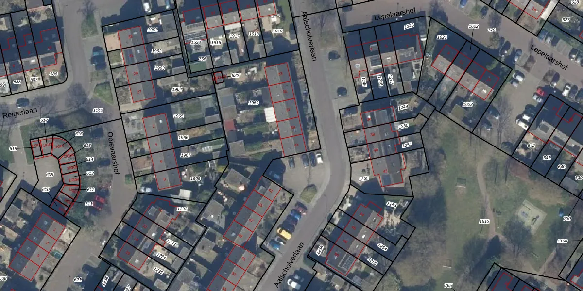 Het perceel waarop Aalscholverlaan 41 staat heeft een oppervlakte van 2390 m². Dit is een zeer groot perceel. De perceeloppervlakte wordt geregistreerd door het Kadaster. Gedetailleerde informatie over de maten van dit perceel kunt u vinden in het rapport Kadastrale kaart met maatvoering van Aalscholverlaan 41.