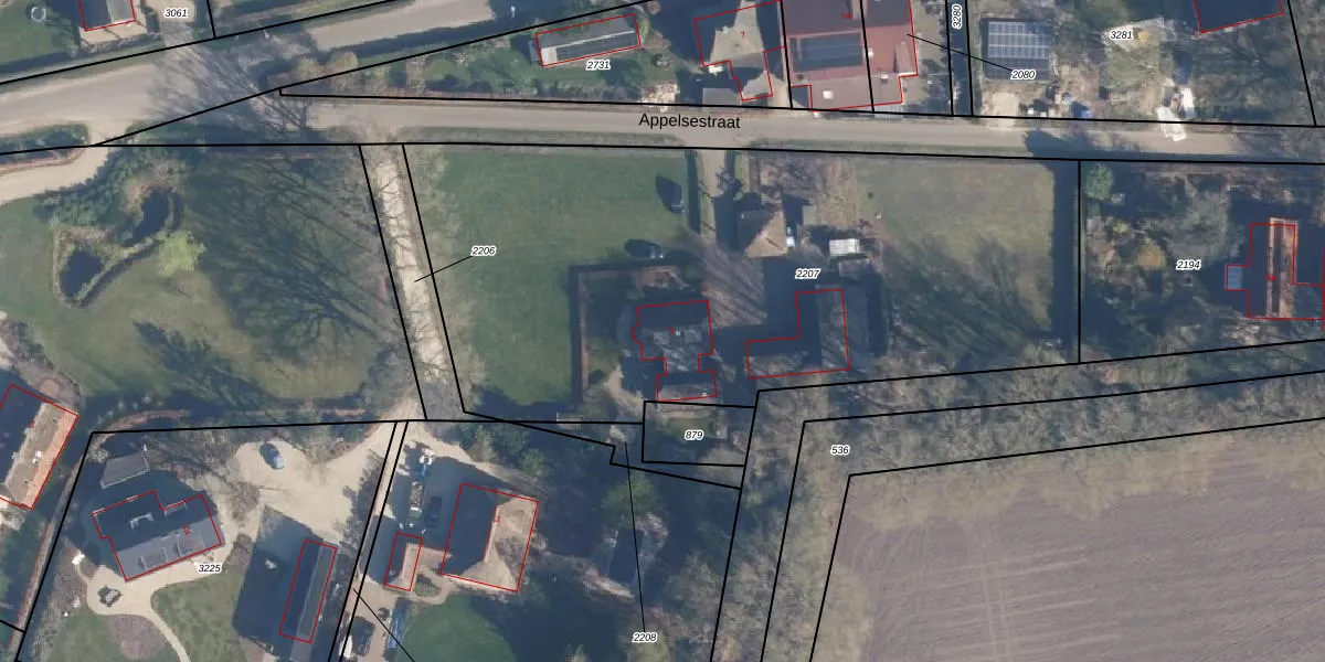 Het perceel waarop Appelsestraat 5 staat heeft een oppervlakte van 3716 m². Dit is een zeer groot perceel. De perceeloppervlakte wordt geregistreerd door het Kadaster. Gedetailleerde informatie over de maten van dit perceel kunt u vinden in het rapport Kadastrale kaart met maatvoering van Appelsestraat 5.